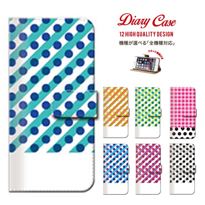 全機種対応 水玉 水玉模様 ドット × ボーダー チェック ドット柄 dot 定番 カラフル 手帳型 ケース スマホケース 送料無料 EVA-L09 ALE-L02 D5788 ZB551KL