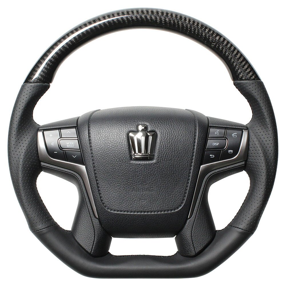 REAL レアル クラウンマジェスタ 210系 ステアリング Dシェイプ プレミアムシリーズ ブラックカーボン(ブラックユーロステッチ) S210-BKC-BK
