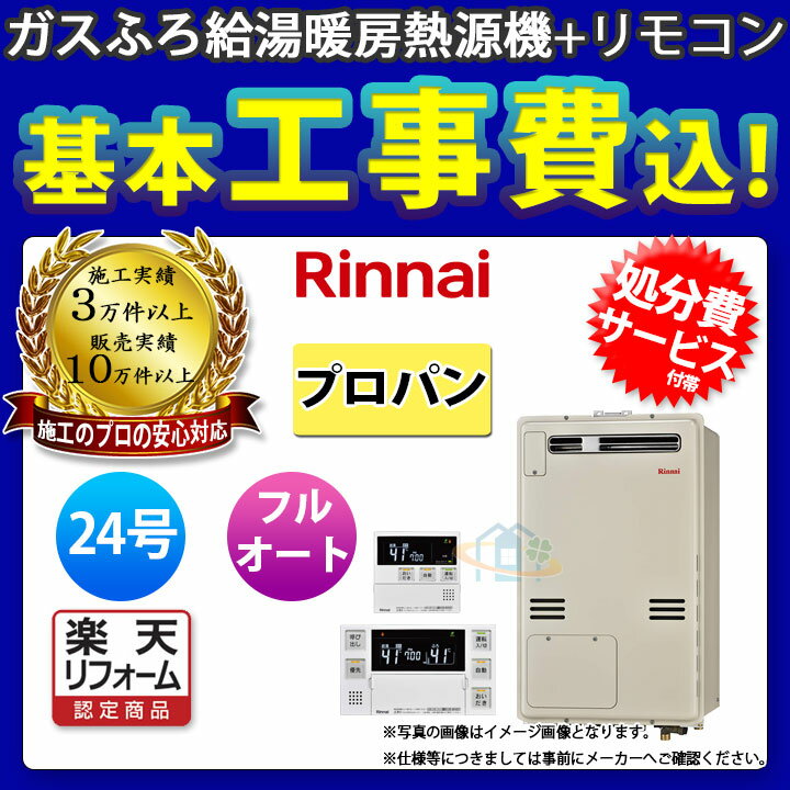 【楽天リフォーム認定商品】 [RVD-E2405AW2-1(A)_13A+MBC-240V+KOJI] ※納期未定 リンナイ ガス給湯暖房熱源機 24号 都市ガス リモコン付 標準取替工事付