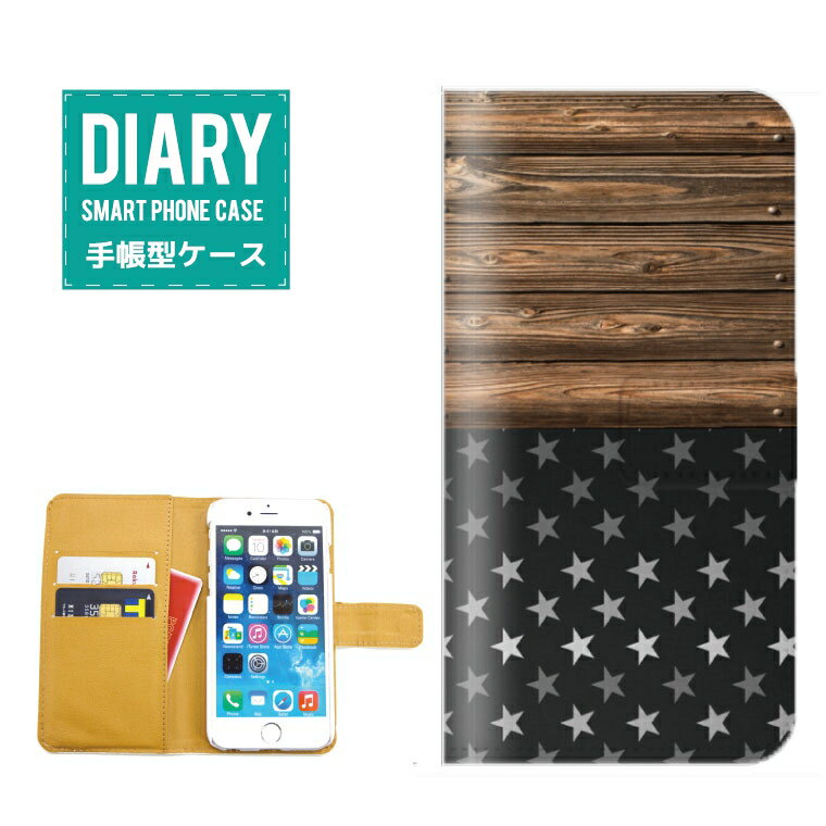 AQUOS ZETA SH-03Gケース 手帳型 (L) 送料無料 ウッド × 柄 模様 プリント デザイン ウッド ウッド風 スター ボーダー ストライプ オリジナル デザイン ブラック ホワイト ブラウン ベージュ カワイイ